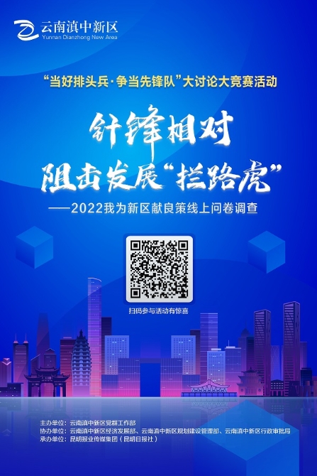 云南滇中新区党群工作部相关负责人介绍,该主题活动是对标新区开展“当好排头兵”大讨论活动相关要求进行策划的,旨在通过网上问卷调查+线下调研讨论的方式,发动新区广大干部群众深入思考如何大抓产业发展、大抓营商环境、大抓市场主体、大抓改革开放、大抓创新发展、大抓绿色发展,为新区髙质量发展凝聚智慧与共识。