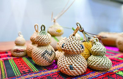 4月22日,博鳌亚洲论坛主题公园展出的黎族藤编产品。新华社发