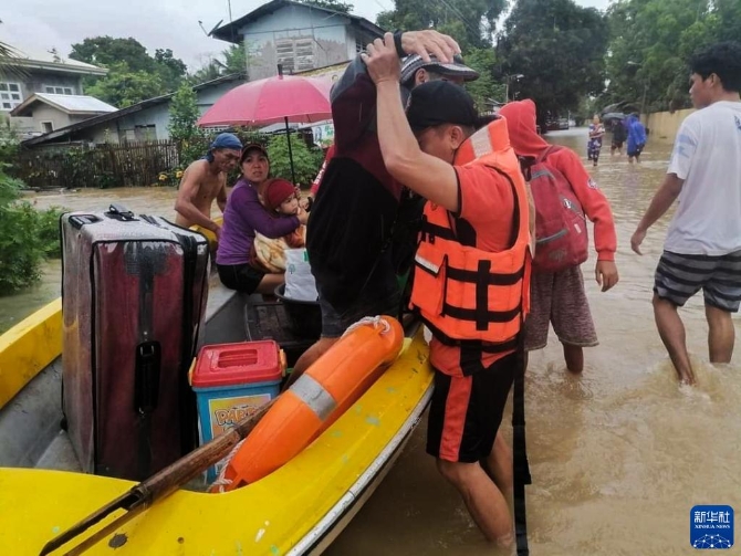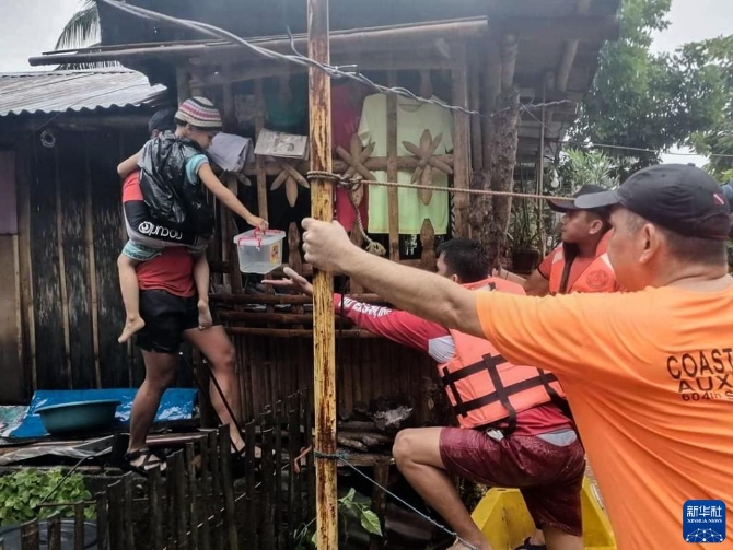 4月12日,救援人员在菲律宾卡皮斯省帮助被洪水围困的居民转移。菲律宾救灾部门11日说,热带风暴“鲇鱼”在菲律宾登陆后引发洪水和山体滑坡,已造成至少24人死亡,超过13万人受灾。