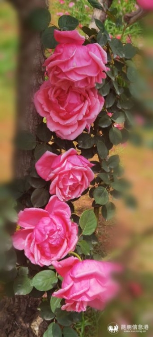 自2019年到现在,昆明滇池度假区在滇池路安装月季花架约90套,种植爬藤月季约645米;红塔东路种植树状月季1419株,红塔西路种植树状月季1011株。经过几年的精心养护,如今月季花形成度假区一道亮丽的风景线。