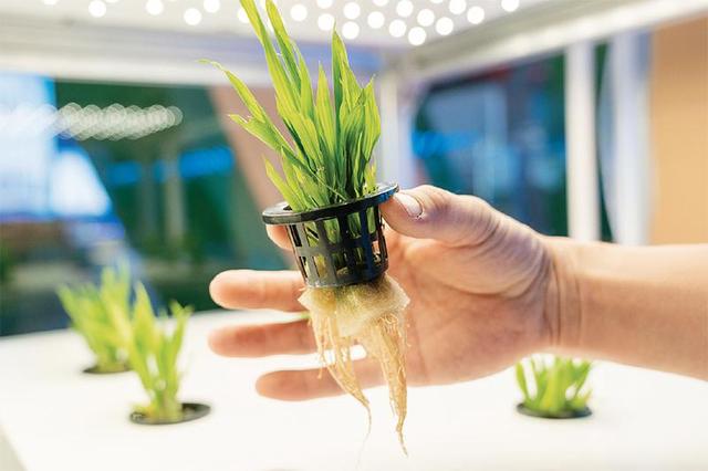 2021年10月21日,在北京展览馆举行的国家“十三五”科技创新成就展上,工作人员展示无人植物工厂水稻育种加速器中的水稻。 新华社记者 才扬/摄