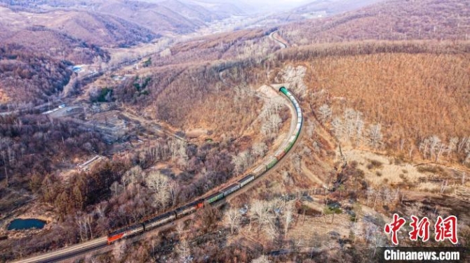 一列中欧班班驶入绥芬河。 曲艺伟/摄