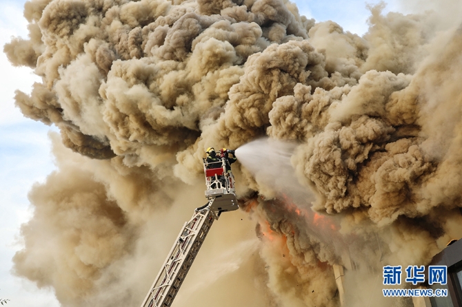 扑灭大火后,刘亮面部及耳朵被烤红。 新华网发