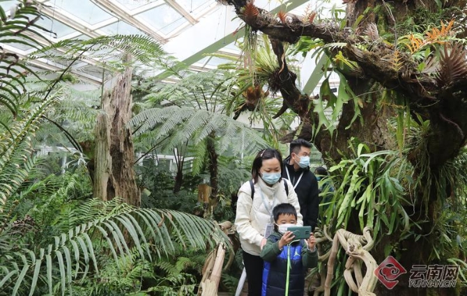 “五一”假日,春城市民走进中科院昆明植物研究所昆明植物园“扶荔宫”,看主体温室中的热带雨林、隐花植物、荒漠植物、以及争奇斗艳的兰花和神奇的食虫植物……人们在科普参观中探秘神奇的植物世界,感受生物多样性之美。