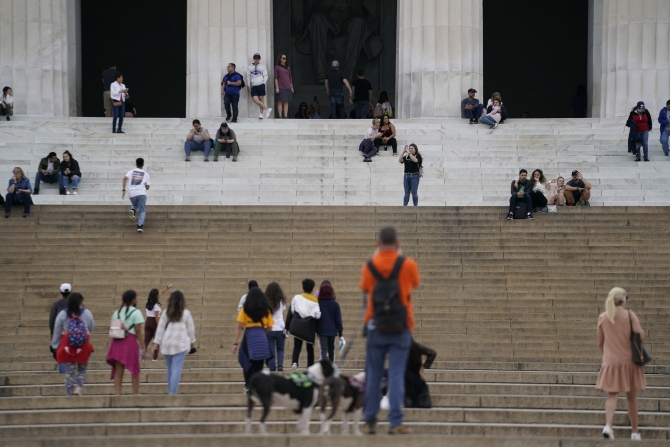 2021年10月25日,人们在美国首都华盛顿的林肯纪念堂游览。美国儿科学会和儿童医院协会25日发布的最新报告显示,自新冠疫情暴发以来,美国已有近630万名儿童确诊感染新冠病毒,过去6周累计新增儿童感染病例超过100万例。 新华社发 (沈霆 摄)