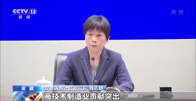 安徽省统计局副局长 肖志颖:高技术制造业贡献突出。新能源(增加值)增长达到29.9%,新能源汽车(增加值)增长20.2%。规模以上高技术制造业增加值对工业增长贡献率达到31%,跟去年同期比提升12.4个百分点。