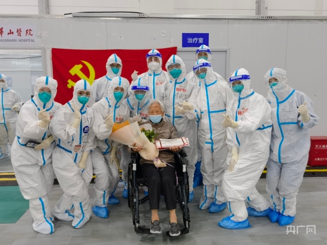 医疗队员们还和王漫如老人做了一个约定,等到疫情退去,方舱关闭,脱下大白防护服再相聚。如今,王漫如老人正在老人公寓进行居家健康观察,华山医院已经聘请她日后担任医院行风监督员。
