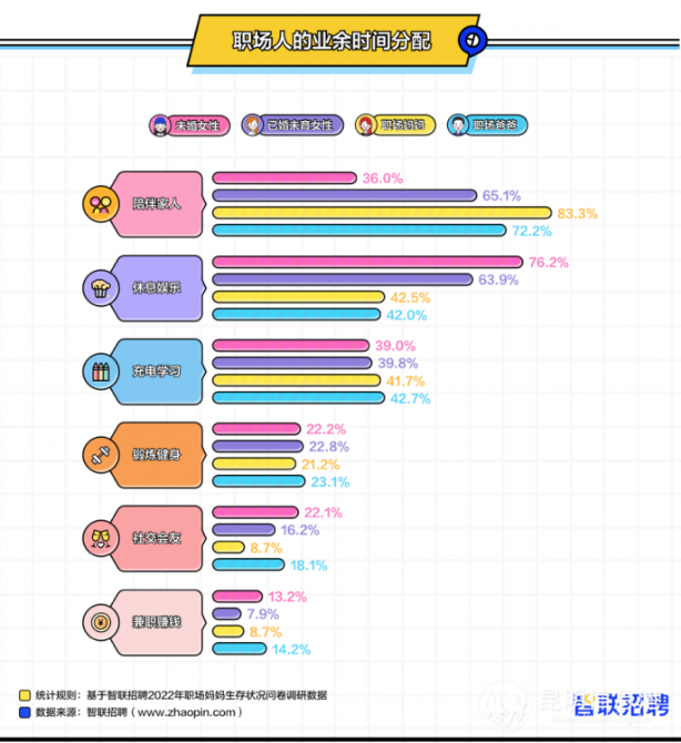 83.3%的职场妈妈将时间主要用于陪伴家人