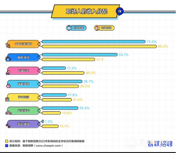 80.2%的职场妈妈将收入主要用于子女抚养和教育