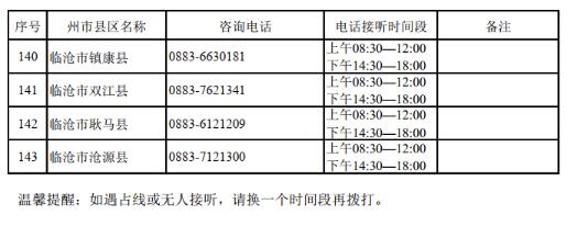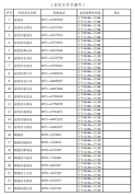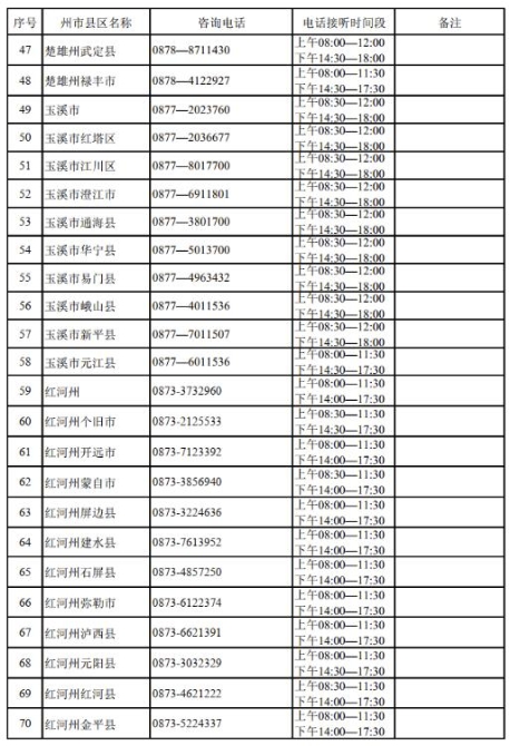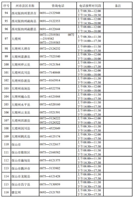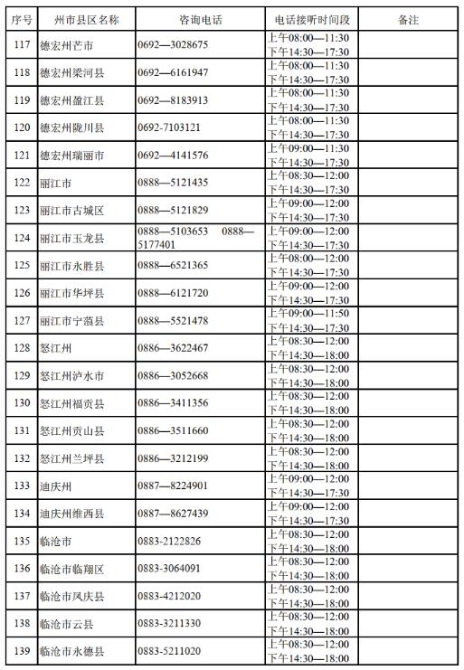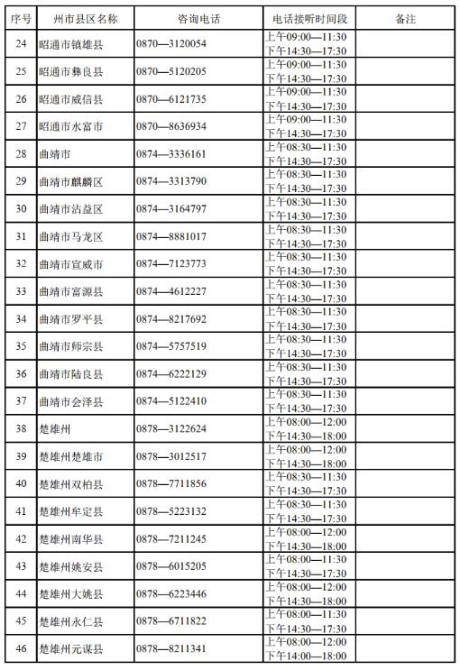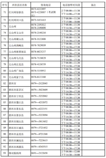 附云南省2022年高考期间各州、市、县咨询电话: