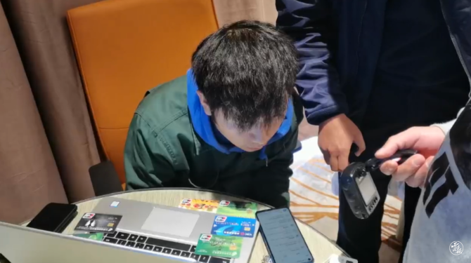 时机成熟,警方迅速展开收网行动!民警进入该酒店房间,发现嫌疑人有的正在电脑前“跑分”洗钱,有的躺床上休息,电脑桌上摆放着各类银行卡、身份证、手机和堆积如山的外卖包装……