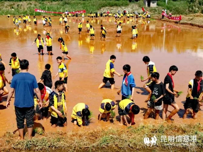 昆明信息港讯 记者郭成明 “快给我一把秧苗!我要自己动手栽!”“田里走路太难了,我的脚都拔不出来了!”“种水稻还真不容易,真是‘粒粒皆辛苦’啊!”