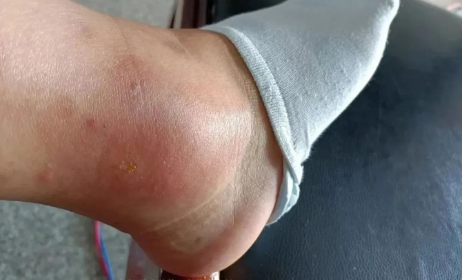 冯云在支援陇川时被毒虫咬到脚,脚肿得像个馒头