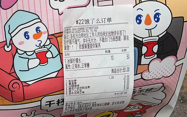 或是一箱水、数杯奶茶、一份蛋糕、几箱蔬菜水果……这些爱心居民没有留下姓名,有的只在便签上留下几句暖心鼓励的话,有的匆匆放下东西,道一声“你们辛苦了”,他们用最朴实的语言和最浪漫的方式向这群暖心的“守护者”“逆行者”表达爱与支持。