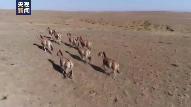 这两天,内蒙古包头出入境边防检查站民警在中蒙满都拉口岸巡逻时,发现了25头国家一级保护动物、世界濒危动物蒙古野驴的踪迹。