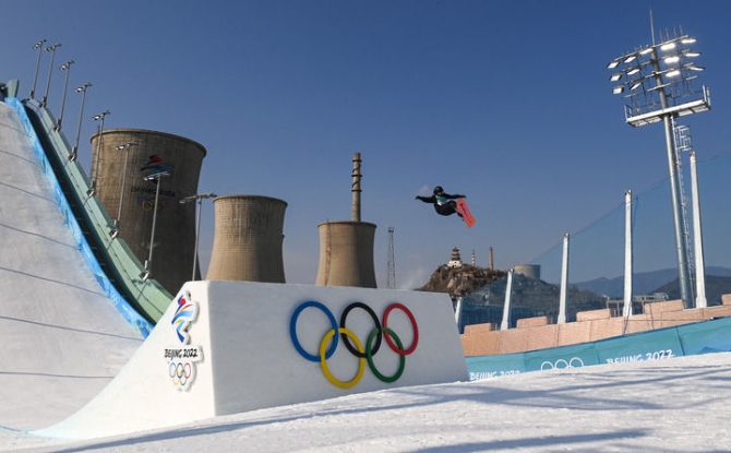 2月15日,中国选手苏翊鸣在比赛中。当日,北京2022年冬奥会单板滑雪男子大跳台决赛在北京首钢滑雪大跳台举行。苏翊鸣夺得金牌。新华社记者 黄宗治 摄