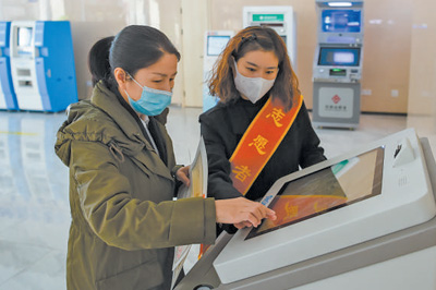 内蒙古自治区呼和浩特市玉泉区政务服务中心“24小时政务服务自助超市”,经营者在志愿者指导下打印营业执照。近年来,玉泉区将出入境、税务、不动产登记等自助服务终端纳入政务服务大厅,“自助办、随时办、立等可取”的服务模式为企业提供便利。 新华社记者 李志鹏摄