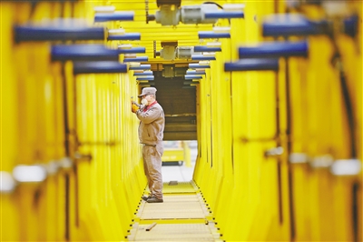 浙江省湖州市莫干山高新区数字化车间,工人在检测零部件产品。近年来,该高新区实施数字化改革,优化营商环境,“浙里办”“企业码”等服务端全面覆盖企业办事需求,全方位畅通商事审批办理渠道,有效激发市场主体活力。 谢尚国摄(人民视觉)