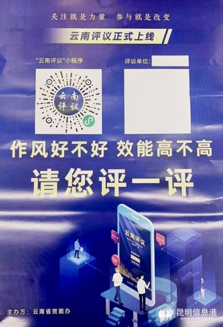 昆明信息港讯 记者上官艳君 为深入推进作风革命、效能革命,打响“云南服务”营商环境品牌,推进服务水平提升、营商环境优化、项目落地见效,5月10日,“云南评议”(群众扫码评议)系统正式上线。