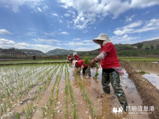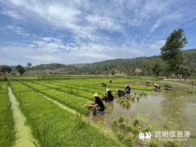 昆明信息港讯 记者段佳琪 “这里水稻要插密一点,当中可以稀一点,这样线条比较明显……”5月10日,在昆明市富民县的散旦镇沙营村,农户们正忙着插种水稻,和以往不同的是,这次的水稻不再只是简简单单的绿色,其中还有黄色、紫色、白色等多种创意水稻品种。