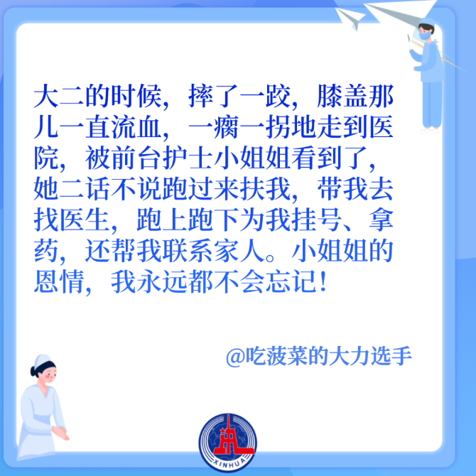 在国际护士节即将来临之际,网友讲述了和白衣天使的温暖小故事。让我们一起感谢每一位医护人员用生命守护生命,向他们致敬!