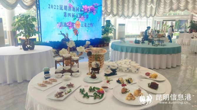 昆明信息港讯 记者杨雁 将云南春季的20余种花卉食材入菜,每道菜品最大的亮点就是都有可食用的花卉元素,再加上诸如“鲜花水饺”、“滇池荷塘月色”、“七彩云南偶遇石榴花”、“花开富贵”、“沸腾茉莉沁和牛”、“鲜花门丁饼”、“花仙子生焗大明虾”等带着扑鼻花香味的菜品名字,一定已让人垂涎欲滴了。5月11日,2022昆明滇池国家旅游度假区第四届烹饪大赛暨“滇池之邀·云花之约”花之宴主题烹饪大赛举行。