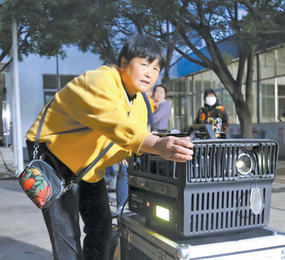 云南省大理白族自治州弥渡县红岩镇赤水村,乡村电影放映员李玉华夫妇热爱电影放映工作,服务于乡亲们的文化生活。图为李玉华调试电影放映设备。杨文明 李武华摄影报道