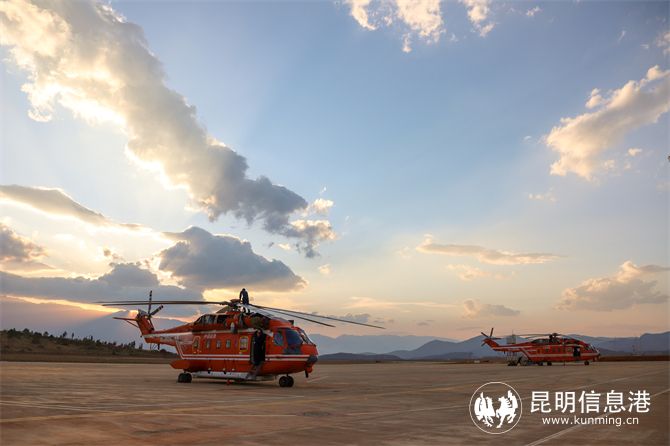 时间回溯到2021年5月9日那一天下午,接到支队出动两架直升机赶赴大理增援灭火的命令,应急通信与车辆勤务中队所有保障队员赶赴外场做保障准备工作,挂风筒、联络航线、“开南导522”…正当最后一架直升机准备升空,中队所有指战员都在心中念到:一定要早日归来!