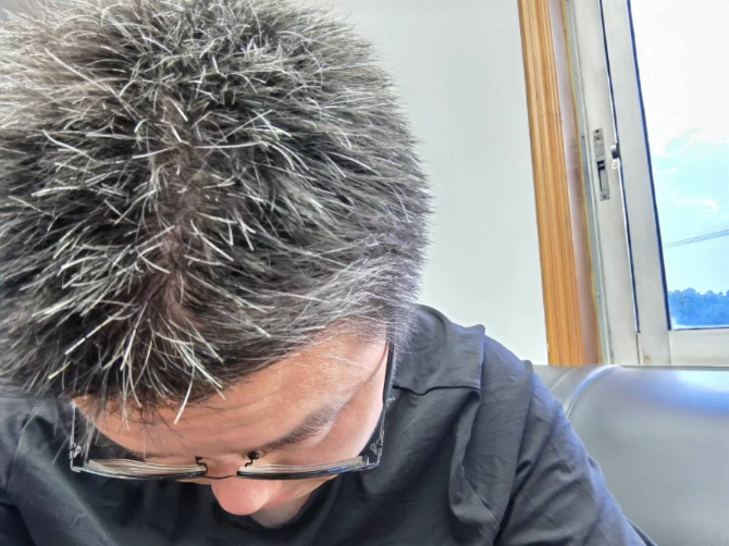 “村里人说我头发白了好多,我本来没注意,自己拿着手机拍了张照,才发现果然如此,也许是这段时间压力太大了吧。”摸了摸那一簇灰白的头发,孙廉笑了笑说。