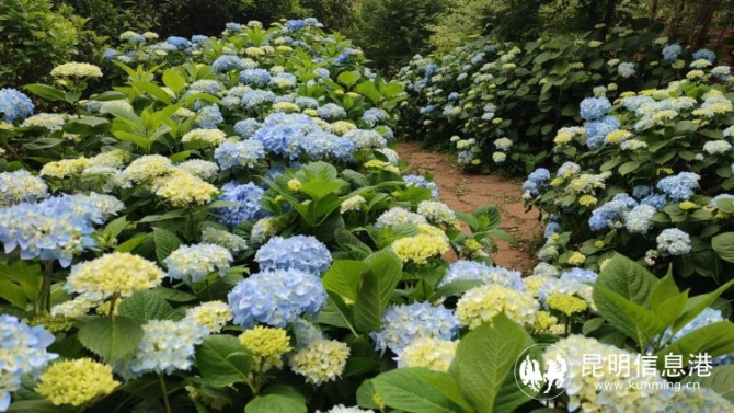 到5月下旬至6月间,花团锦簇、唯美浪漫、色彩各异的绣球花将全面绽放,呈现出五彩缤纷,绚丽夺目的景观,让昆明市郊野公园的绿野成为今夏昆明梦幻花海的打卡网红地。