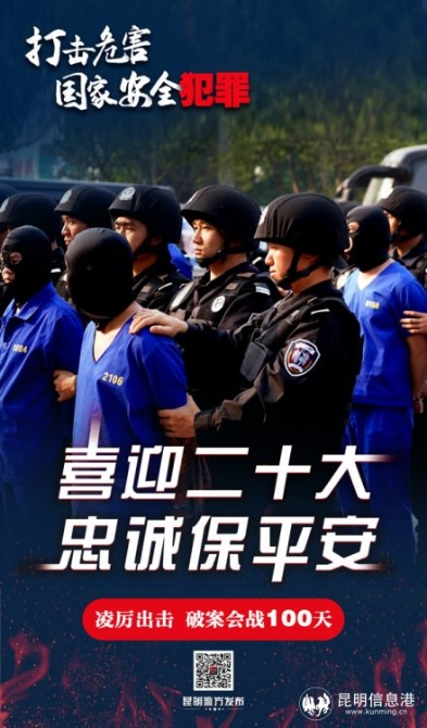 昆明信息港讯 记者合宇聪 5月11日,昆明市公安局党委召开2022年第十一次会议,设置专项议题对“喜迎二十大、忠诚保平安”“破案会战·凌厉出击”专项行动进行研究部署。记者从会上获悉,自5月21日起至8月31日,昆明警方将组织开展为期100天的专项行动。