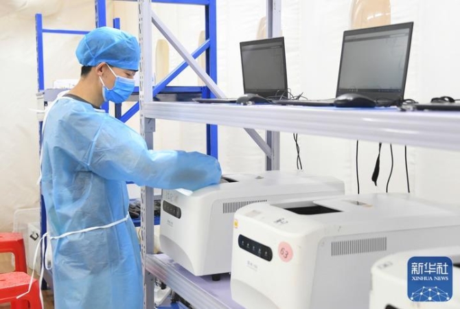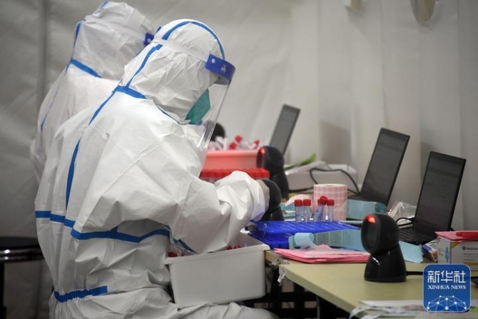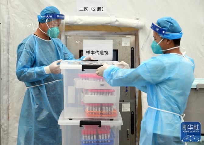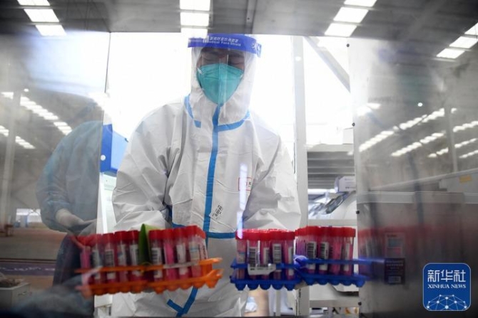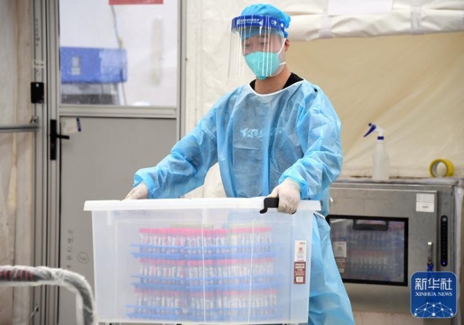 近期,北京市顺义区北务镇的气膜核酸实验室投入使用。据了解,该实验室每日可进行10万管核酸样本检测,在满足顺义区北务镇、龙湾屯镇、南法信镇等地检测需求的同时,还承担了部分来自密云、通州等地区的核酸检测任务,助力疫情防控。(新华社 记者任超)