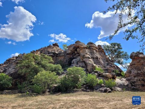 这是5月3日在博茨瓦纳图利自然保护区内拍摄的莫哈巴能岩画遗址全景。