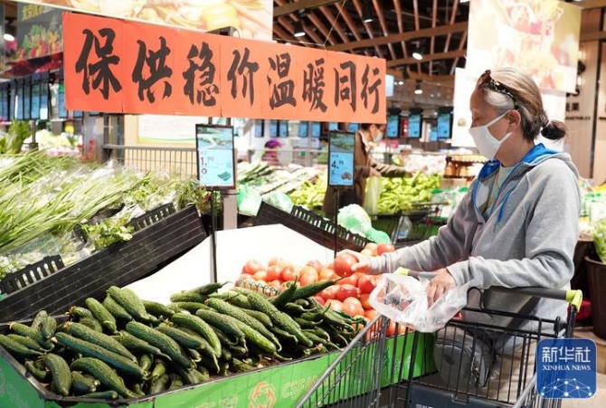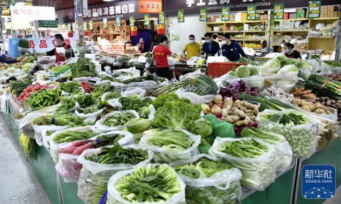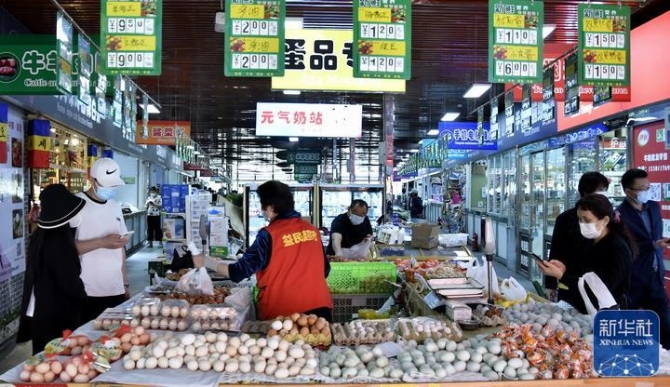 ↑5月13日,市民在北京市朝阳区一家便民市场购物。新华社记者李欣摄