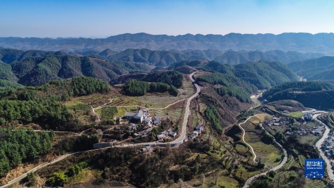 贵州省毕节市赫章县河镇乡海雀村风貌(2018年11月28日摄,无人机照片)。新华社记者 陶亮 摄