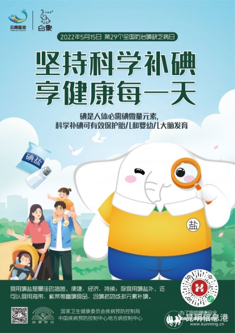 昆明信息港讯 记者昝娟娟 2022年5月15日是我国第29个“防治碘缺乏病日”,主题是“坚持科学补碘,享健康每一天”。云南盐业为持续巩固本地区病防治专项三年攻坚行动成果,推动实现《健康中国行动(2019-2030年)》中碘缺乏病防治有关目标,进一步提高公众对碘缺乏病防治工作的认识,加快推进健康中国建设,旗下五大区公司积极参与防治碘缺乏病相关宣传推广活动,普及碘缺乏病防治相关知识,提高公众对食盐加碘防治碘缺乏病的认识。