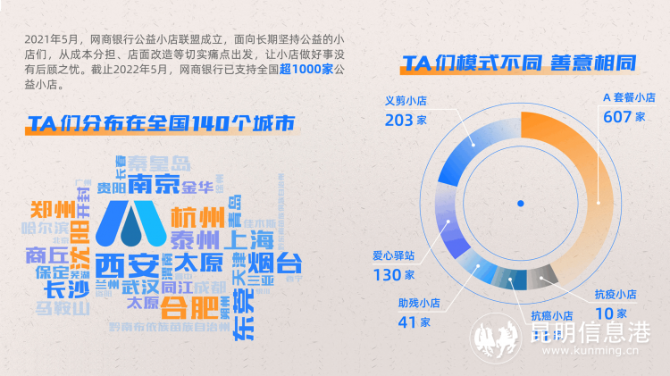 据了解,自去年4月开始,网商银行公益小店联盟在文明和网信等部门的支持下,昆明市网络文化协会联合《都市时报》等多家媒体共同发起“公益小店联盟”,活动一经发布就有不少爱心小店报名,纷纷加入到联盟中来。而网商银行则通过提供公益金、免费升级经营设备等方式,为加入联盟的小店分担公益成本。