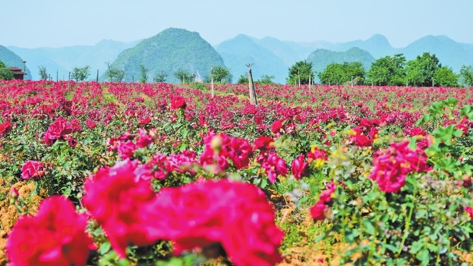 连日来,文山壮族苗族自治州丘北县普者黑景区旁的千亩连片食用玫瑰竞相绽放,在发展特色产业的同时助力乡村旅游发展。