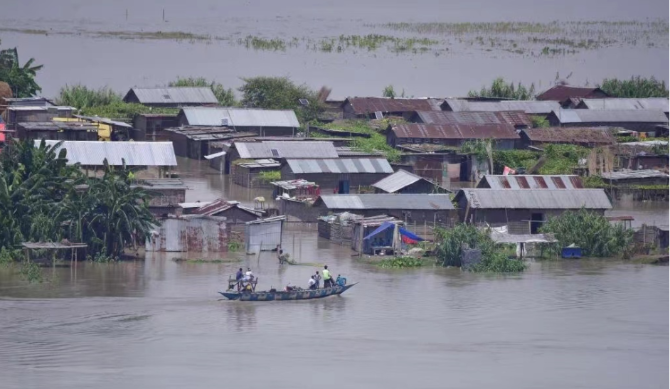 印度阿萨姆邦洪水淹没大片农田:致3人死亡 5.7万人受灾
