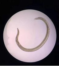结膜吸吮线虫,虫体细长、半透明、淡红色,离开宿主之后变成乳白色。