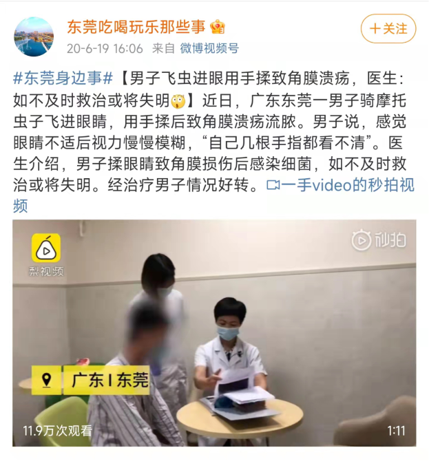 所以,虫子或异物不慎入眼,一定不能揉眼睛,那虫子不小心飞到眼睛里面了,应该怎么办?