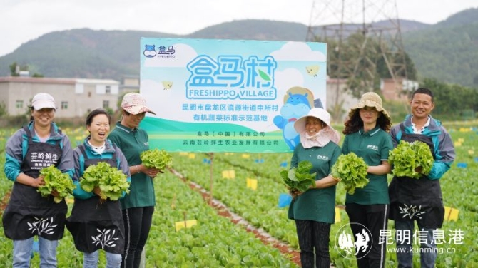 5月15日,全国最大有机蔬菜盒马村,落户云南昆明滇源街道中所村。35岁的小伙段以鸿憨厚地笑,他自豪。