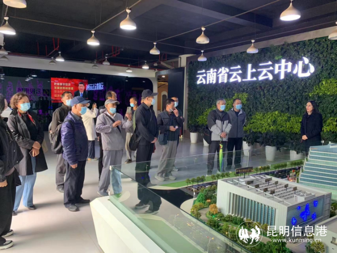 离退休人员先后参观了呈贡新城展示中心和云上云·信息化中心,观看了数字经济开发区沙盘和声光动画展示,听取了讲解员的详细介绍。