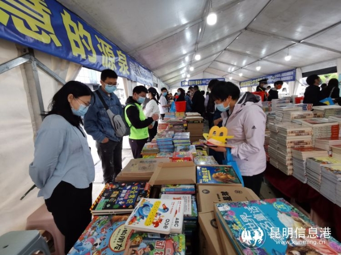 此次活动共设置四个读书点,主会场在呈贡吾悦广场,其他3个分会场分别是七彩云南第一城购物广场1号门、洛龙公园广场、新华书店七彩云南第一城书店。在活动主会场,前来买书的人络绎不绝。同时,广场上正在举办文艺演出吸引了不少市民驻足观赏。