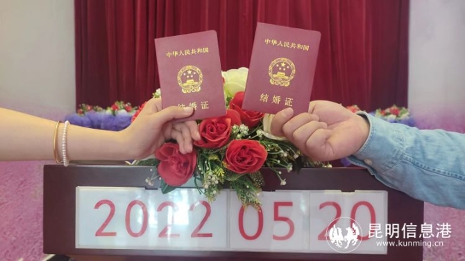 昆明信息港讯 记者杨雁 每年的5月20日都是结婚登记高峰日,为确保5月20日婚姻登记规范有序,西山区政务服务中心通过五项举措,有效防范和处置婚姻登记现场扎堆、聚集、拥挤现象,当天共为219对新人办理了婚姻登记。