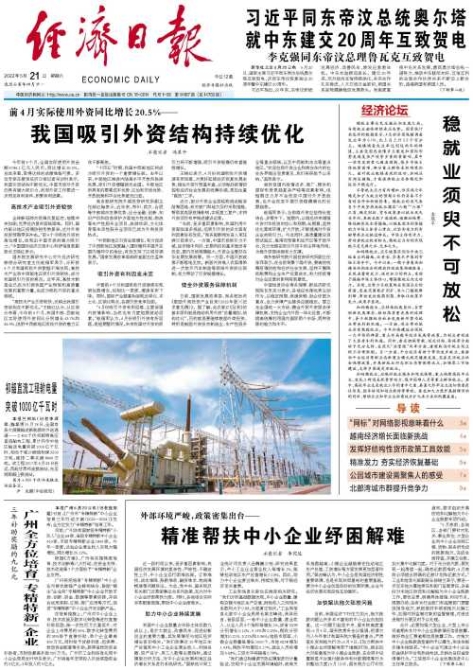 尽管前4个月我国吸收外资继续实现两位数增长,但相比一季度,增速有所下降。同时,国际产业链重构呈现近岸化、本土化、区域化特点,各国引资竞争加剧。