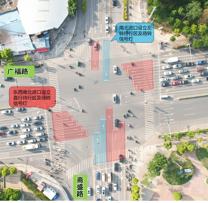 2. 广福路东、西进口增设直行待行区及待转信号灯;