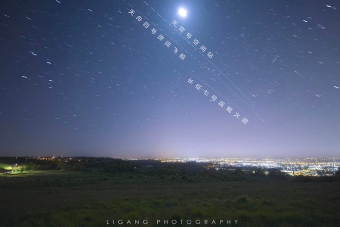 5月16日,中国空间站过境南京,天舟四号与核心舱、天舟三号组成“一”字构型。(徐成城、朱一静 提供)