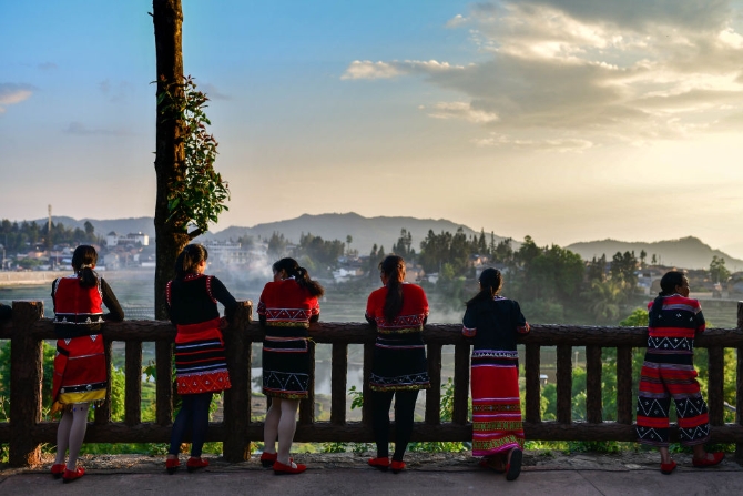 云南省腾冲市清水乡三家村中寨司莫拉佤族村村民在广场上休息(2020年5月15日摄)。新华社记者 胡超 摄