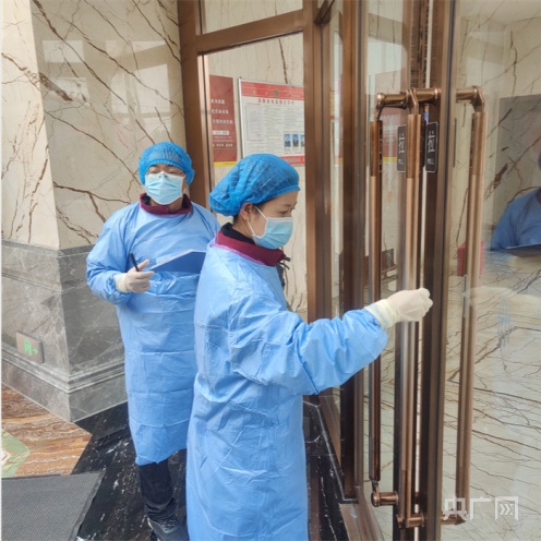 李慧田做公共场所消毒效果监测采样工作(央广网发 乌兰浩特市委宣传部 供图)